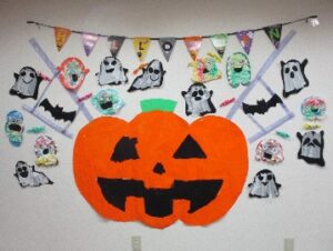 10月へ向けてのブログ・・・ということで今回はハロウィンの壁面工作にしました🎃💛