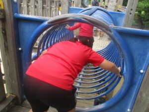 こちらでもロープ吊り橋や、輪くぐりなど最初こそ恐る恐るでしたが慣れてしまえばみんなのもの!