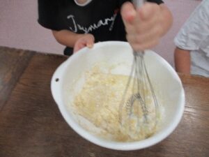 みんなで生地を混ぜたり、焼いたりと積極的に参加をして楽しそうにしていました!