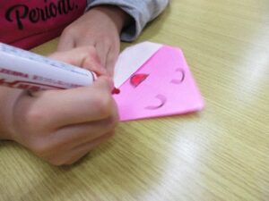 折った後は、栗を可愛く仕上げてみます。やはり顔ですか!?