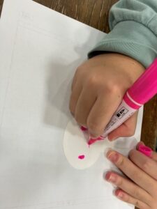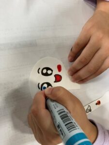 ドクロの顔や模様を描いている間にパタパタする部分はスタッフがお手伝い。