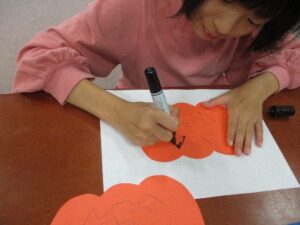 好きな色の画用紙を選んで 怖~い顔のカボチャをペッタン。