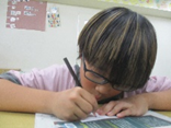 と感謝の言葉を書く子どもたち。自然と笑みがこぼれます。