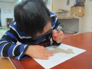 と…。そのためのノリ台紙を横に置いていても気付かない子ども(笑)