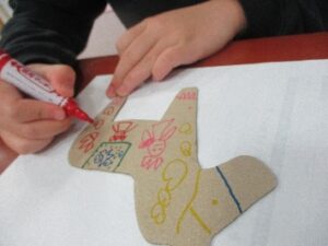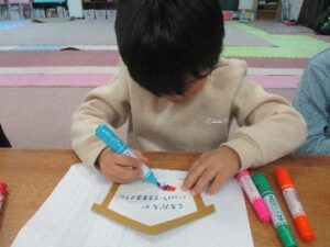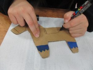 ダンボールを馬の形に切っておき、表面にはダンボールの色そのものなのでそれを子どもたちに絵を描いてもらう事にしました(^_^)v