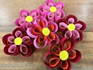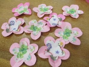 花の形に切っている画用紙を少し折ると動きが出ていて可愛く仕上がるのですが、