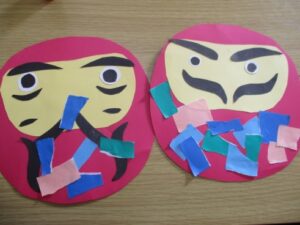 眉毛のつもりで用意したものが髭になったりとみんなの閃きがだるまを作っていきます!