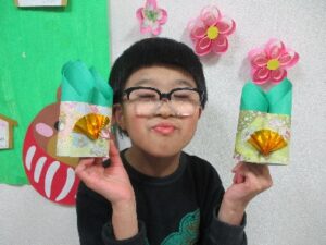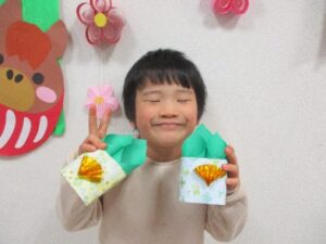 切った断面を隠すように和風に近い折り紙を使いましたが、みんなにどれがいいのか選んでもらいました♬