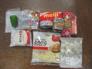 マシュマロは半分に切って、チョコレートは小さく割って使いました!