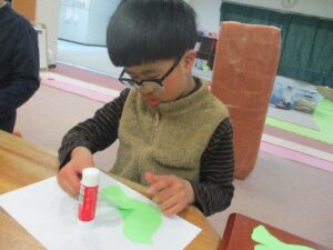 うぐいすは パーツを貼り合わせて お顔や模様を描いたら出来上がり(*^^)v