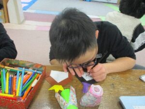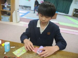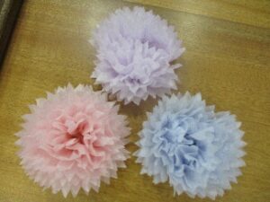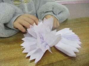 フラワーペーパーのお花は 紙が薄くて 破れそうになりながらも丁寧につくってくれたのでキレイはお花🌸が出来ました(*^^)v