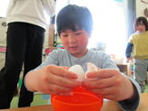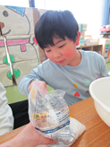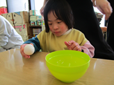 何て言いながらも次々と卵を割っていきます。どの子も本当に卵を割るのが上手になりました🎶