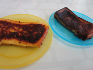 おやつの時間が近付いてきました。ホットプレートを出し、フレンチトーストを焼いていきます。