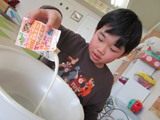と困惑気味の子どもが一人。
