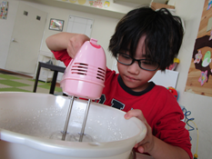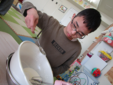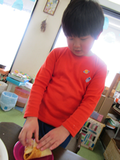 まずはおやつ作り前半戦から。画像を見せながら
