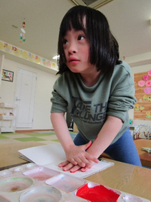 とノリノリの子どもたち。説明を聞きながら作業を進めます。