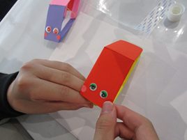と案内してくれました。牛乳パックを使った飛び出すオモチャ。