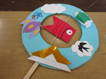 その反動で反対に「クルクル」と回るのを見て「うんうん」と頷く子どもたちでした(^_-)-☆